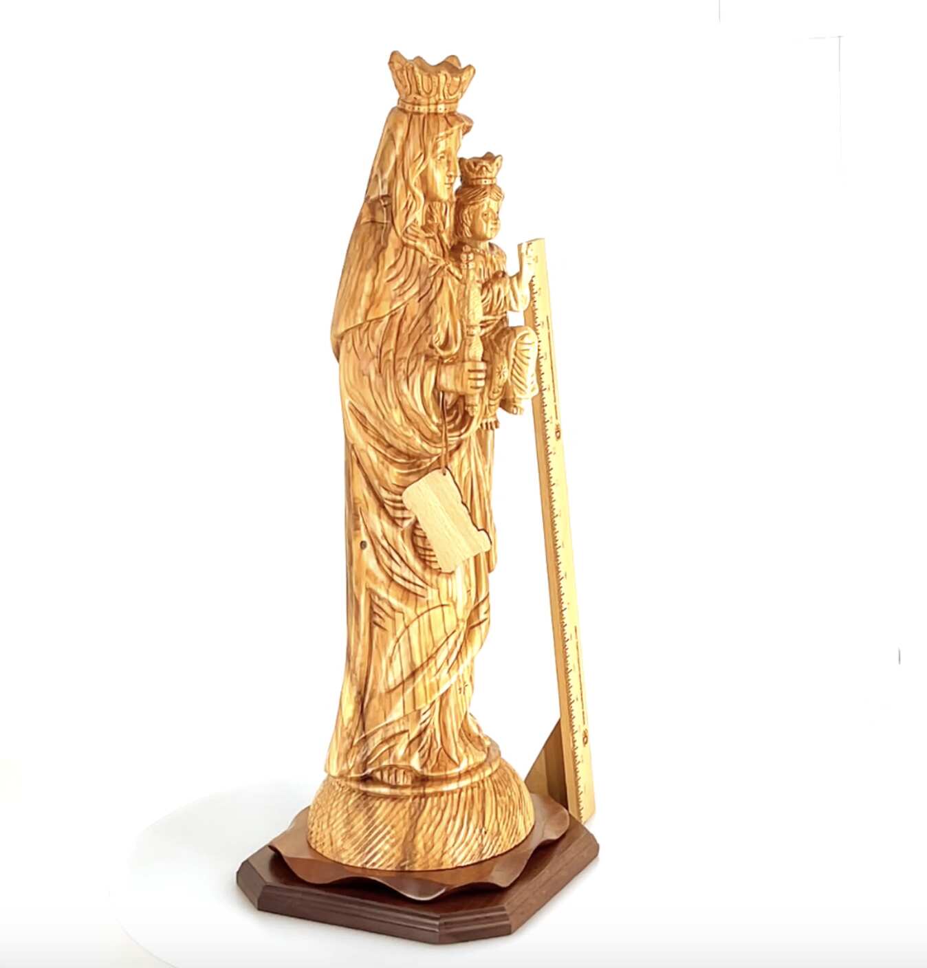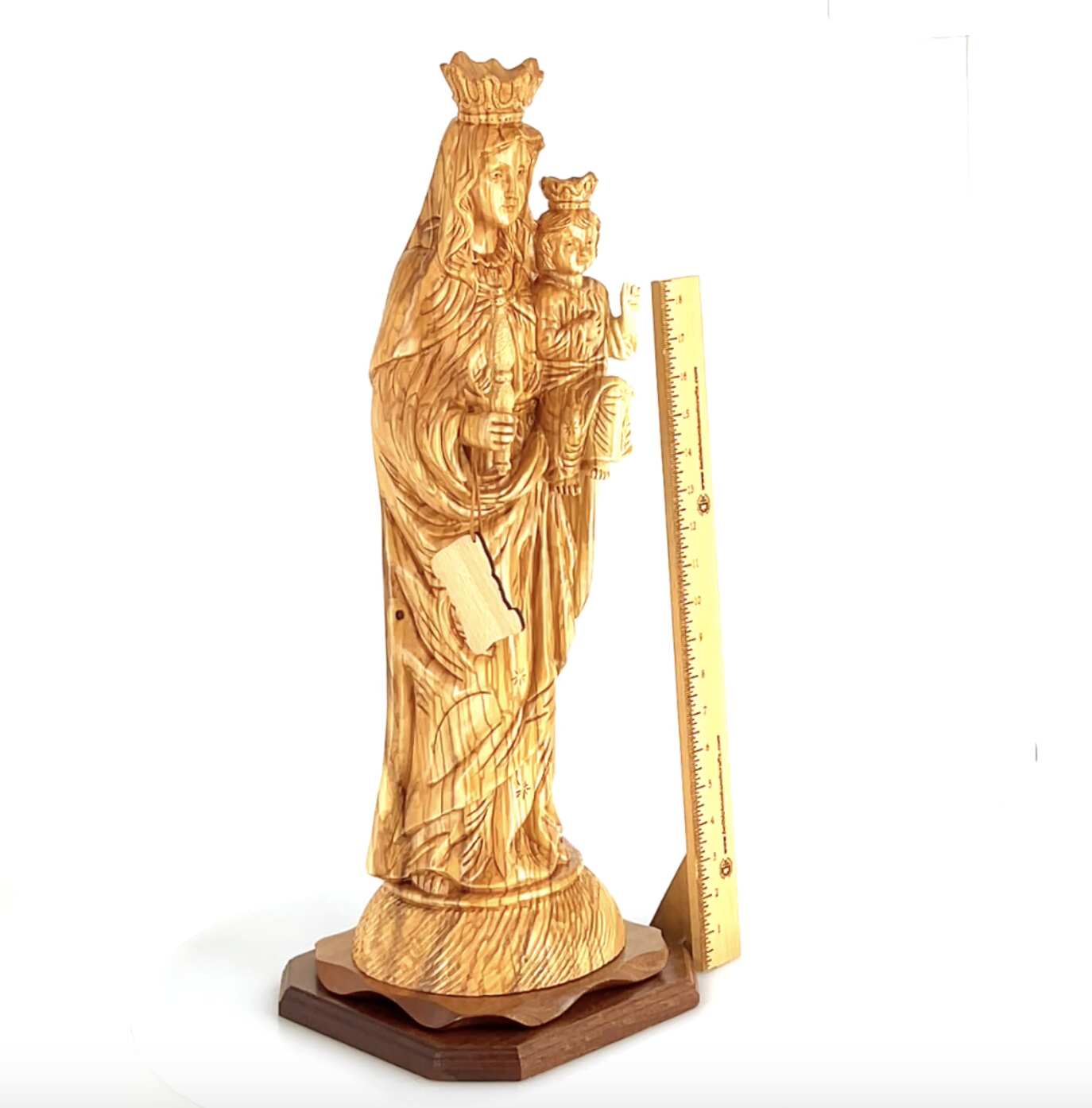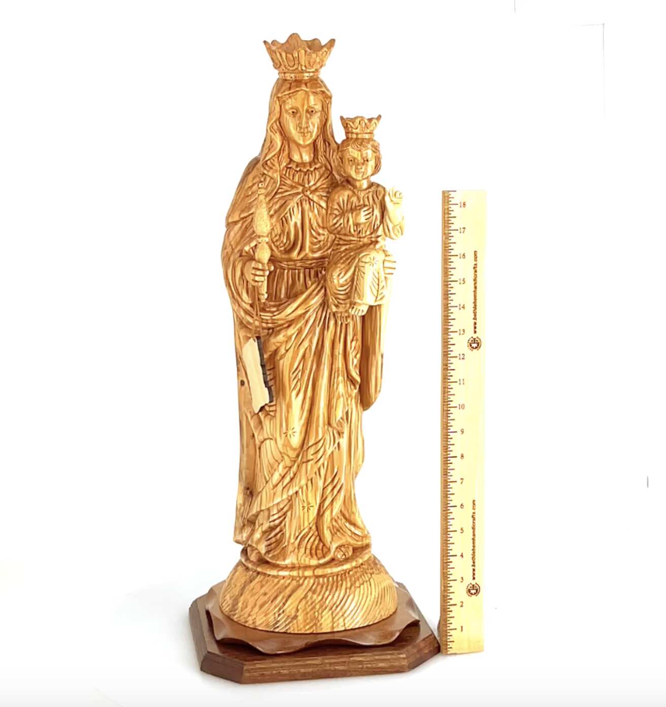Virgin Mary "Our Lady of Mount Carmel" Statue, 17.3" with Baby Jesus Christ Carved from Holy Land Olive Wood