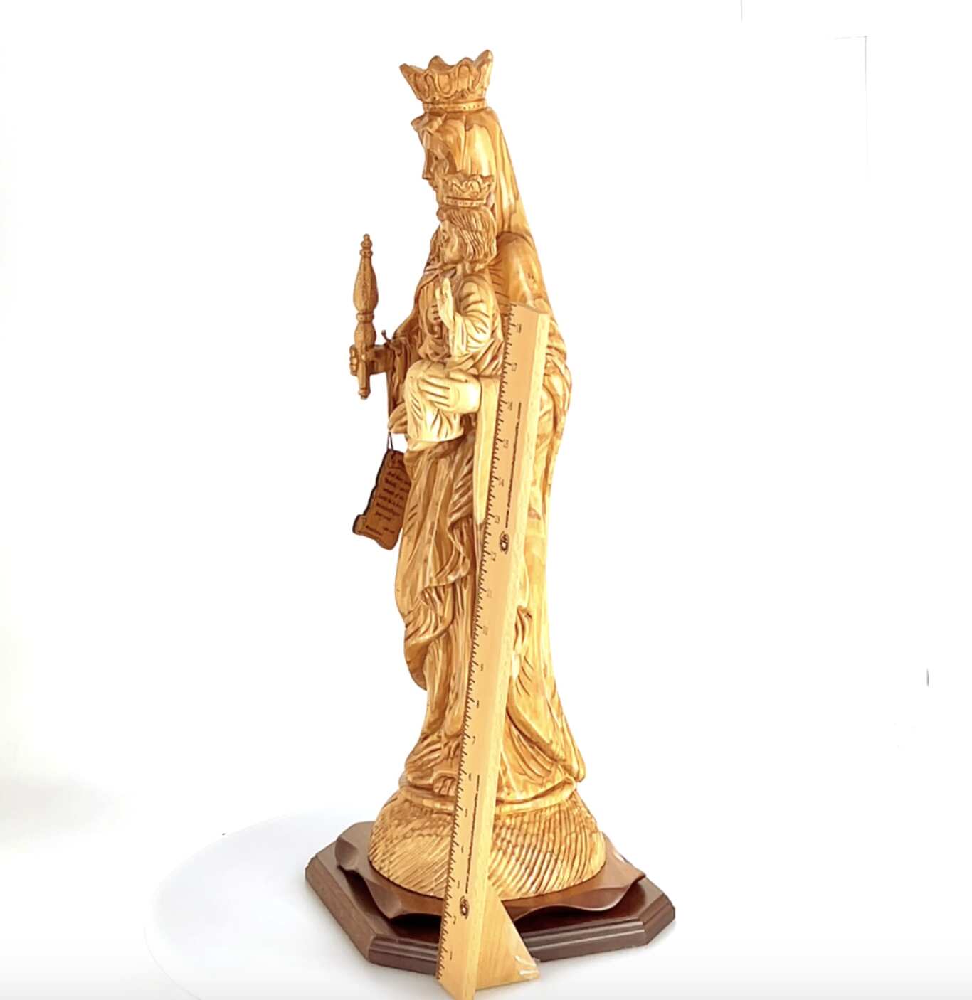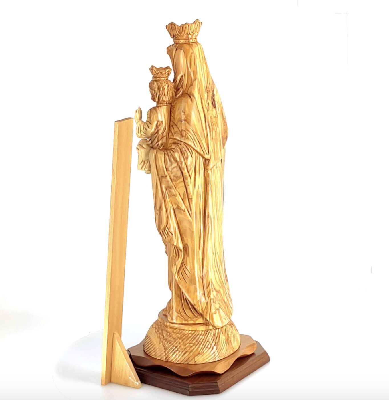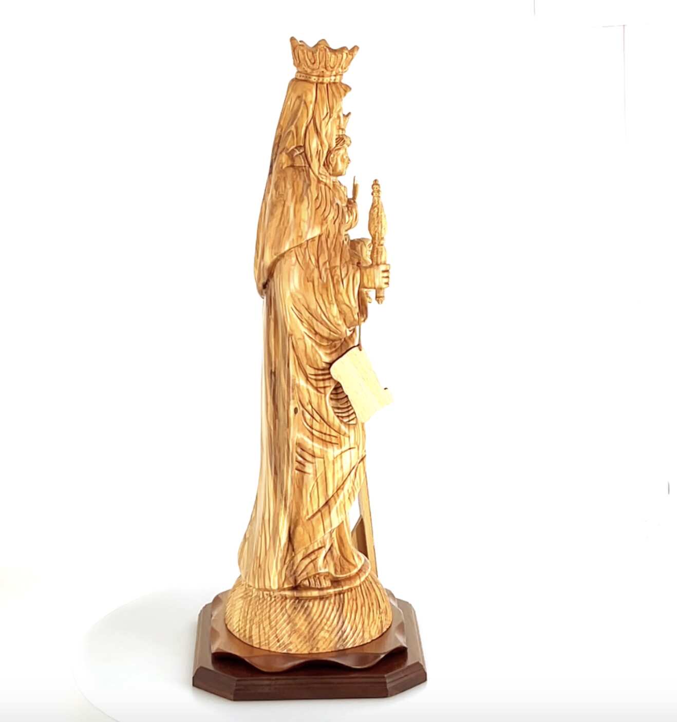 Virgin Mary "Our Lady of Mount Carmel" Statue, 17.3" with Baby Jesus Christ Carved from Holy Land Olive Wood