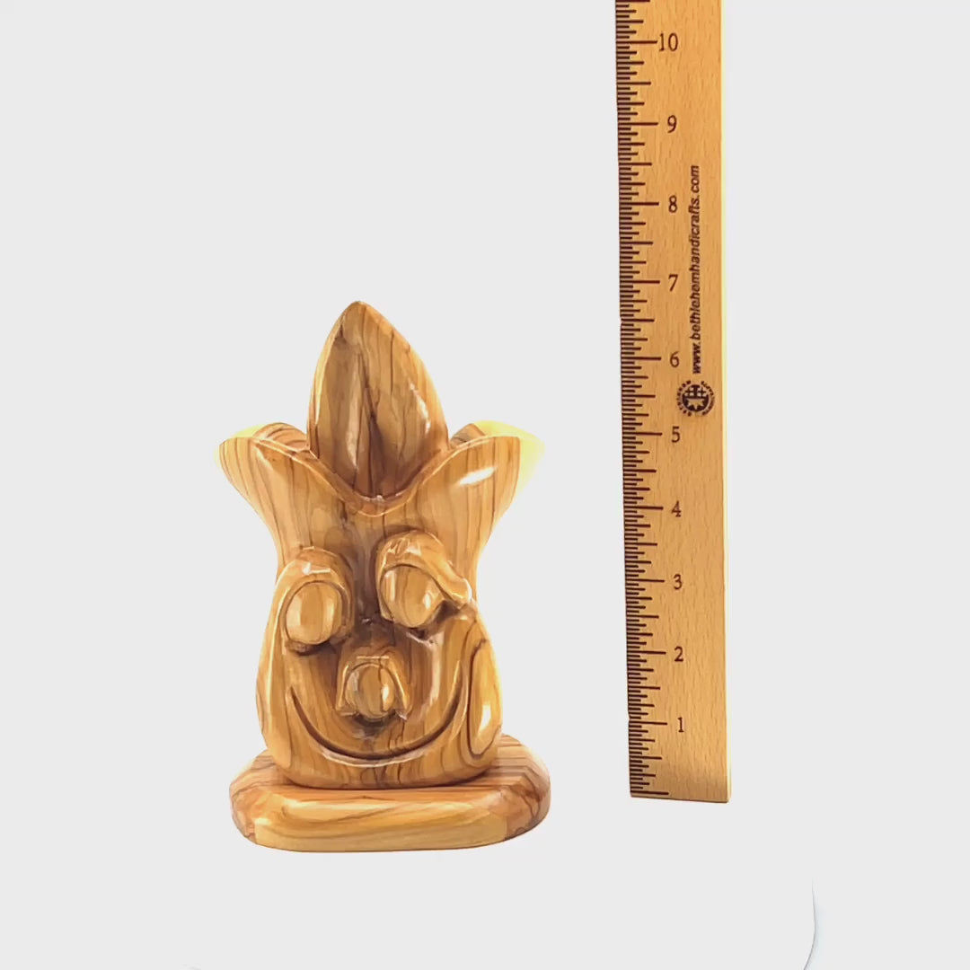 This one of a kind wooden statue of St. Joseph and the Blessed Virgin Mary carrying the infant Jesus is sculpted from authentic Holy Land olive wood.