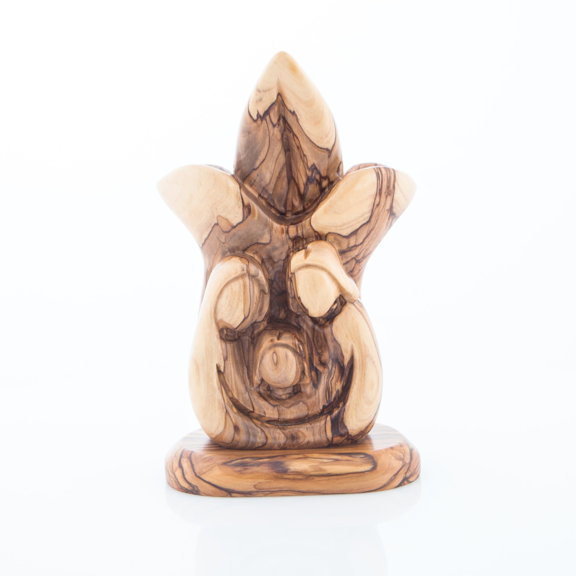 Fleur-de-lis Shaped Olive Wood Holy Family Figurine, 7.3" (Abstract)