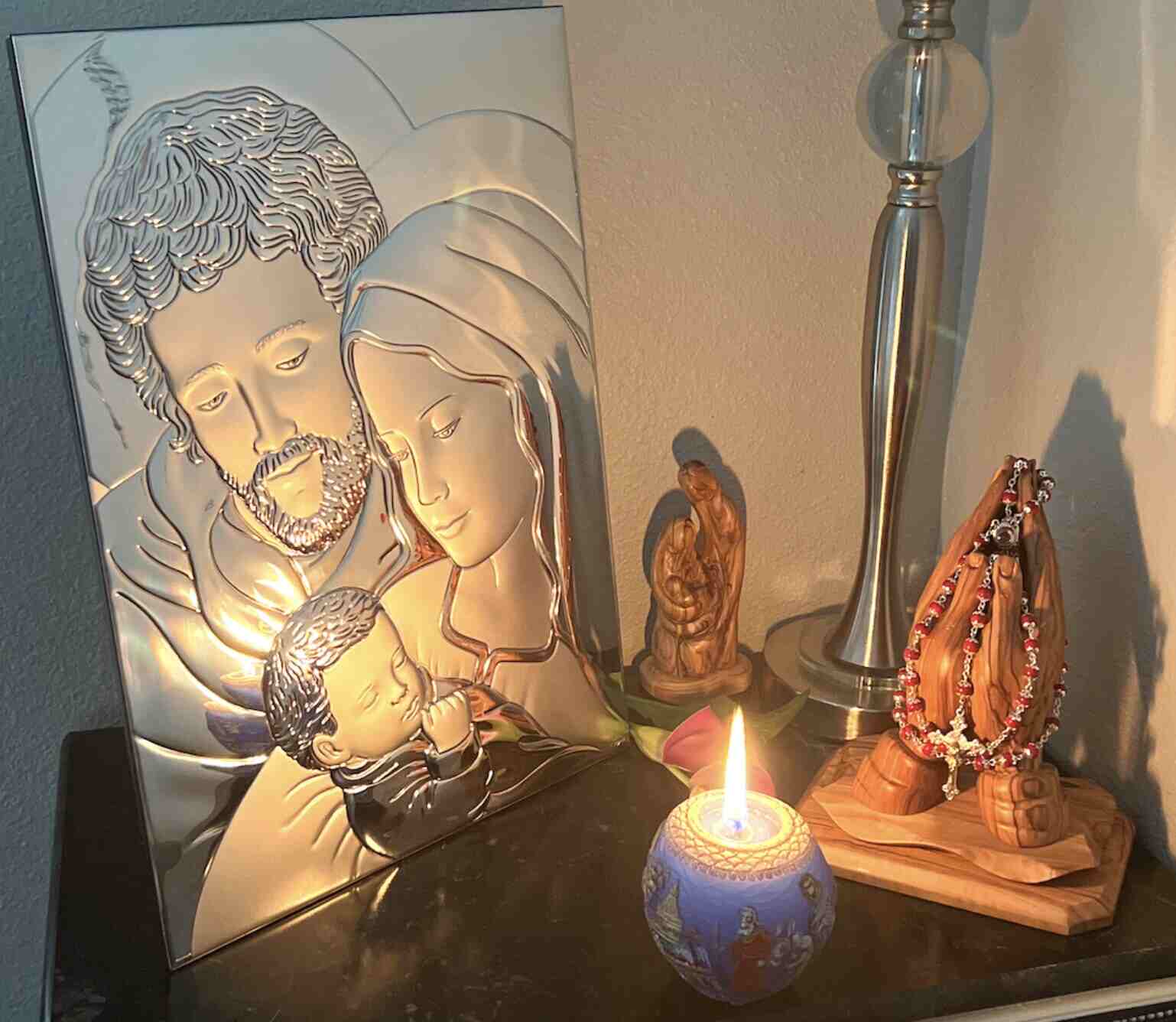 Holy Family with Baby Jesus Christ Silver Icon Standing or Wall Hanging Christian Art
