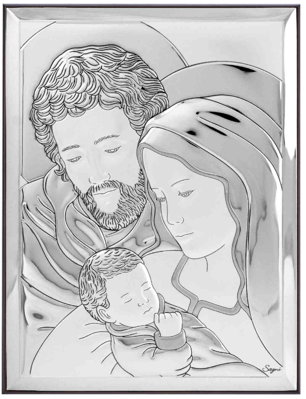 Holy Family with Baby Jesus Christ Silver Plated Icon from Italy