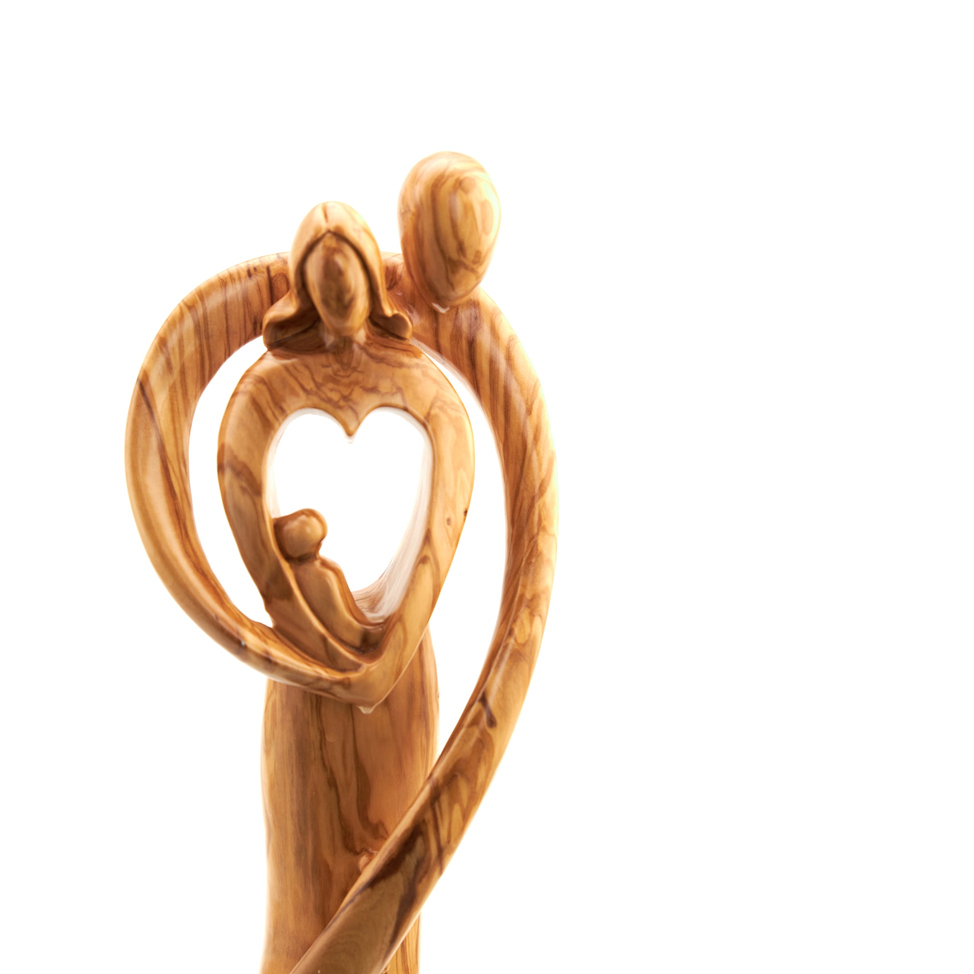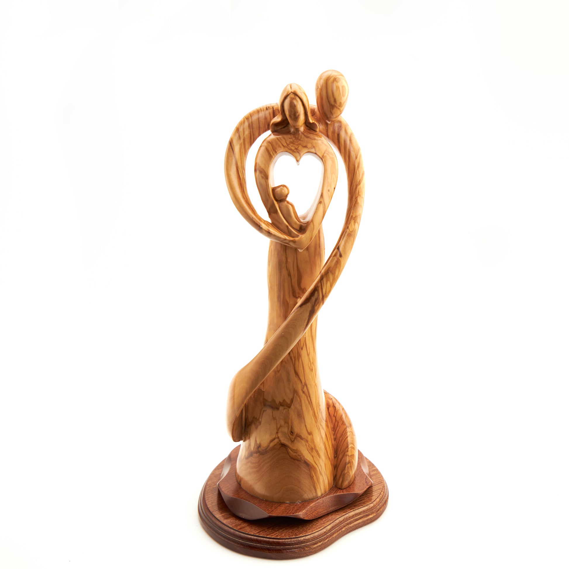 Holy Family Carved Wooden Statue, 17.7" Tall