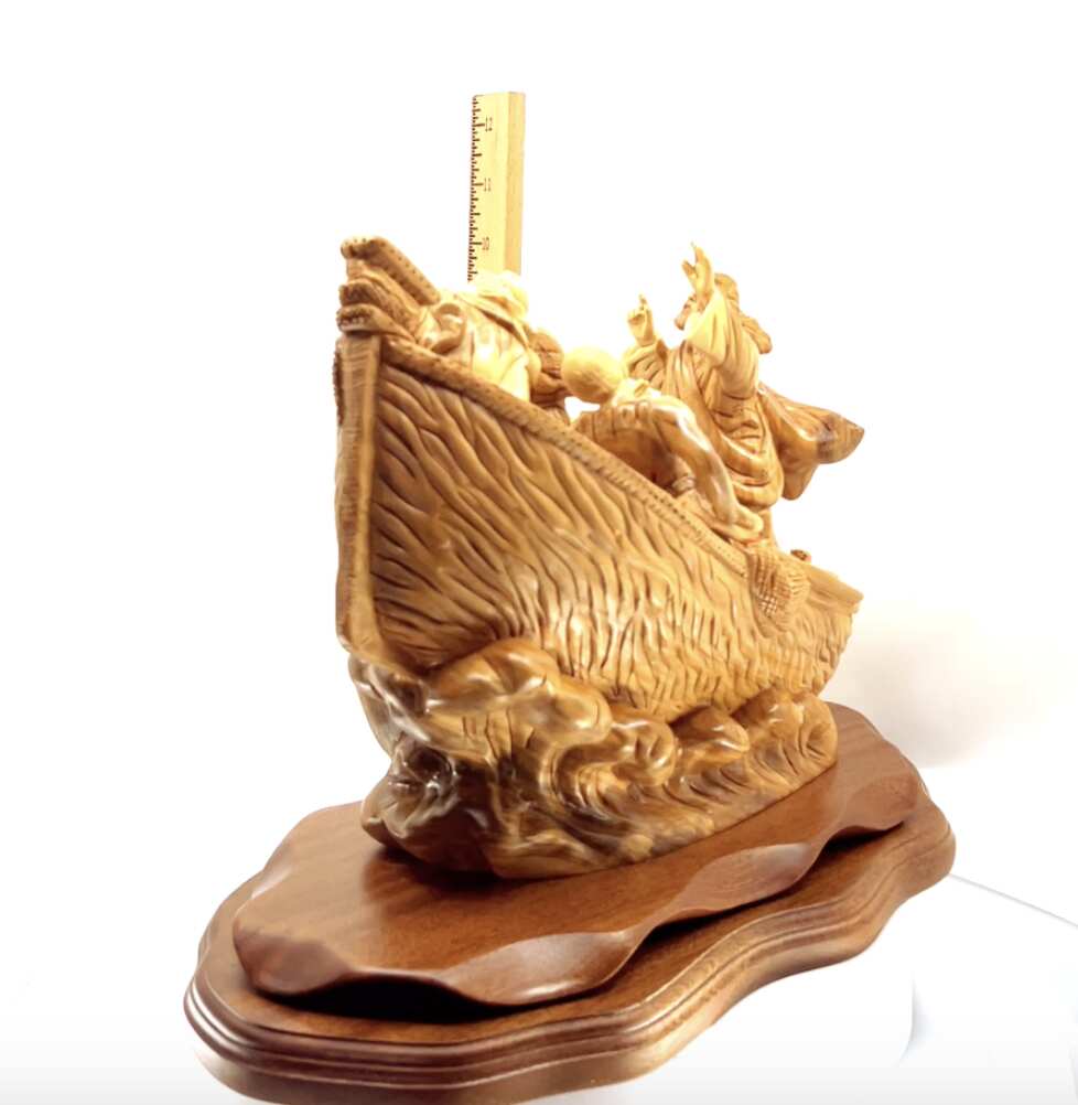 Jesus Christ "Calms The Storm" on Boat, 15.5" Masterpiece Wooden Carving
