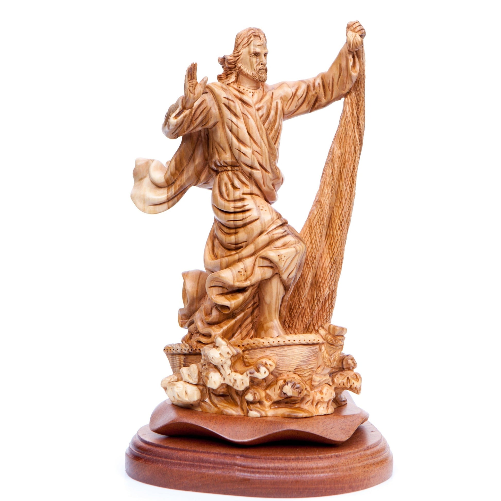 Jesus Christ "Calms The Storm", 10.6" Carved Wooden Sculpture