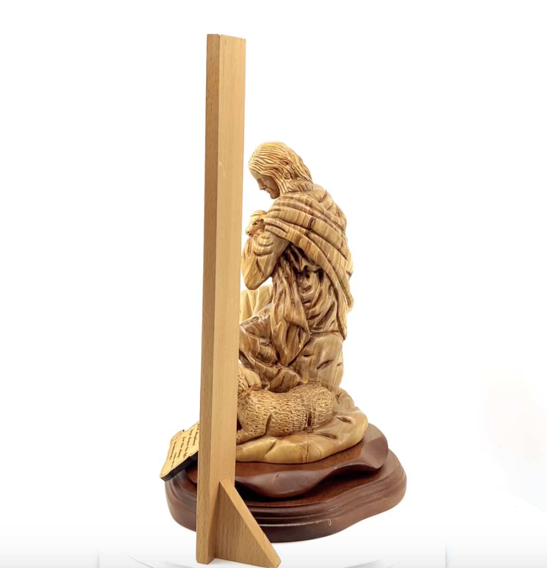 The Good Shepherd, Jesus Christ, 10.5" Carving from Holy Land Olive Wood