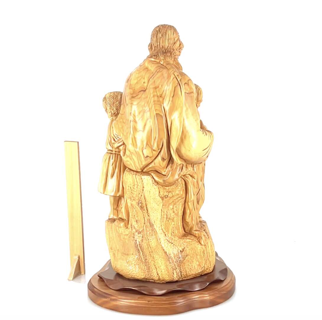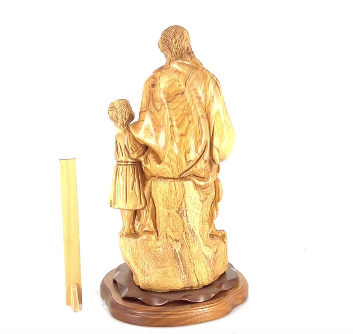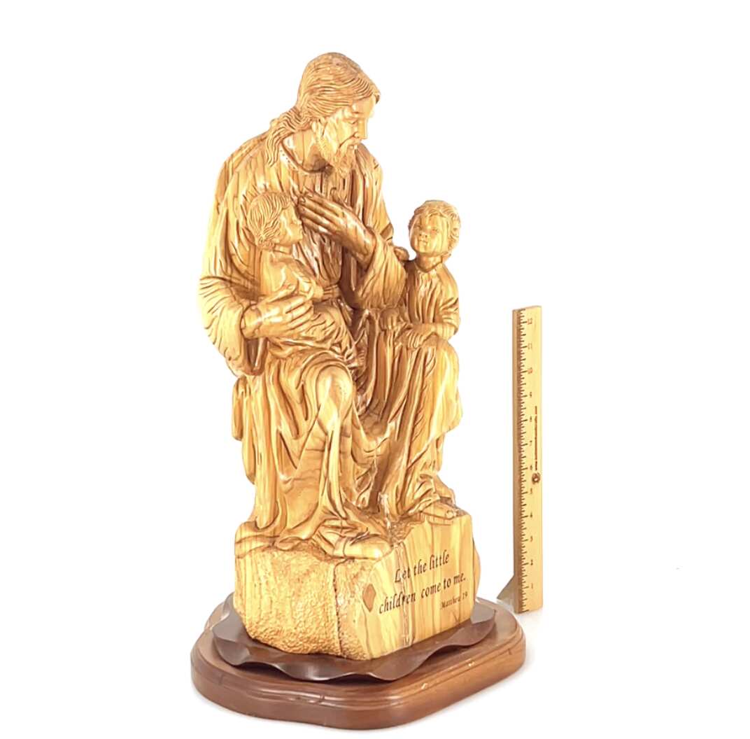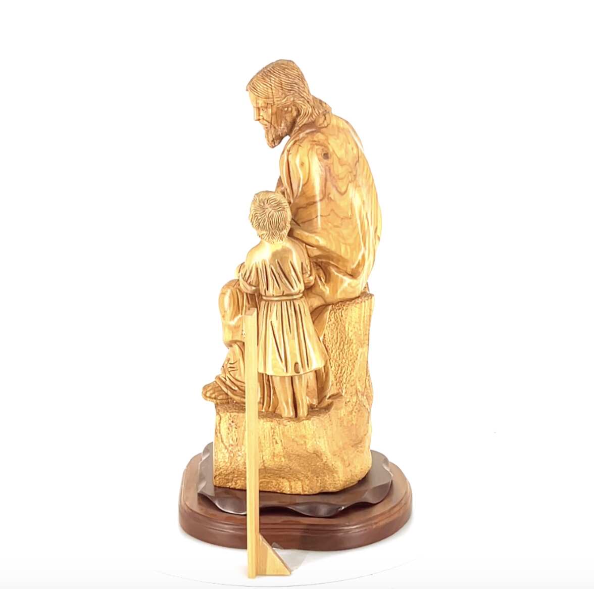 Mark 10:13-16 This greatly carved olive wood Jesus statue represents the tremendous and endless love of Christ to the children. Keep a handmade carved statue from Bethlehem, the Holy Land in your house and hearts.