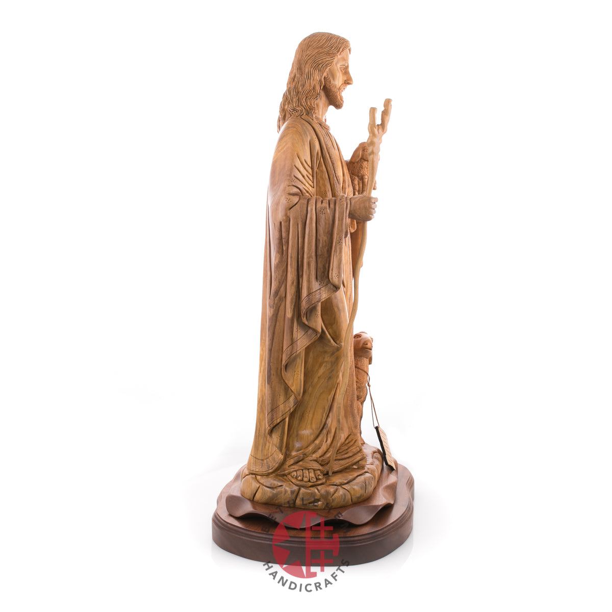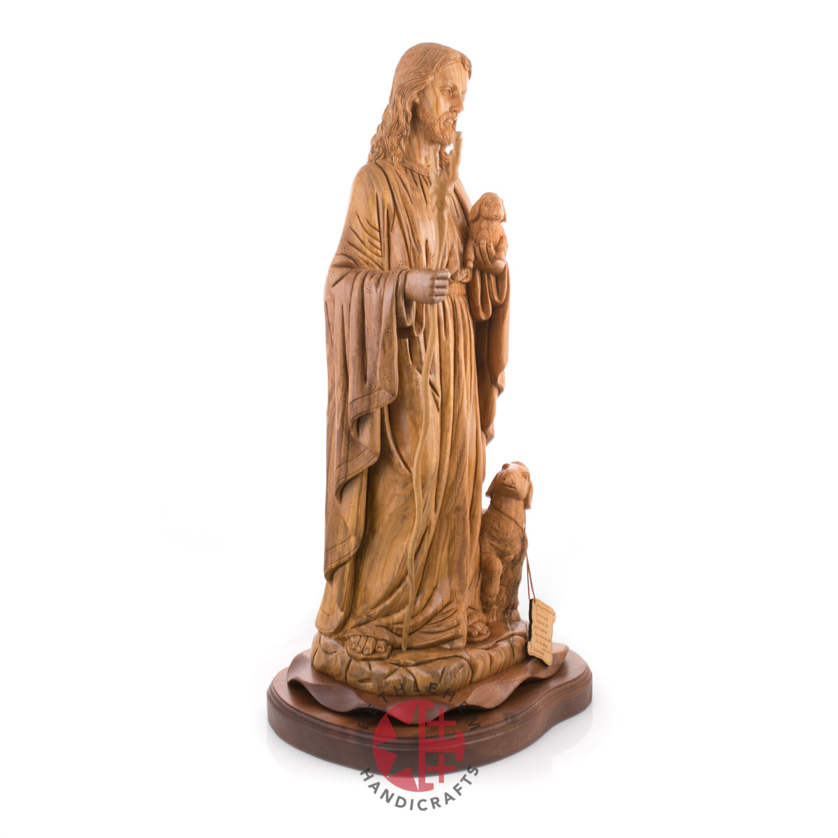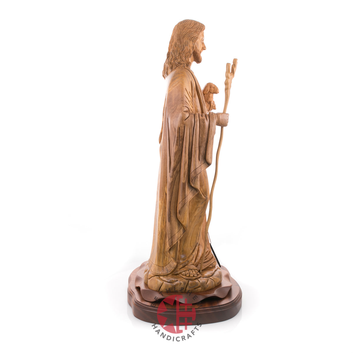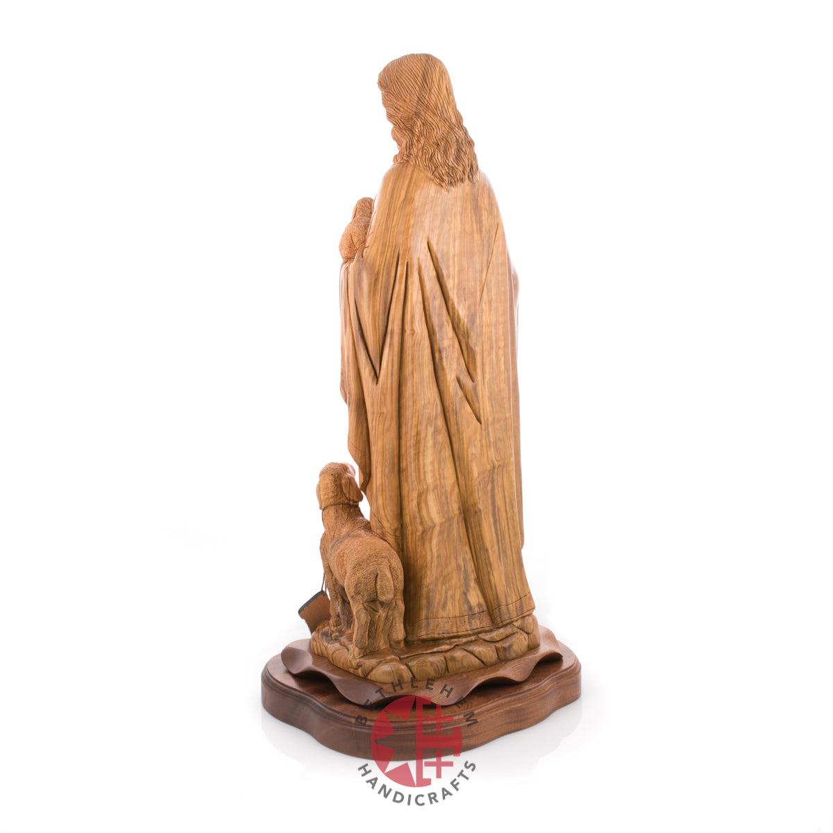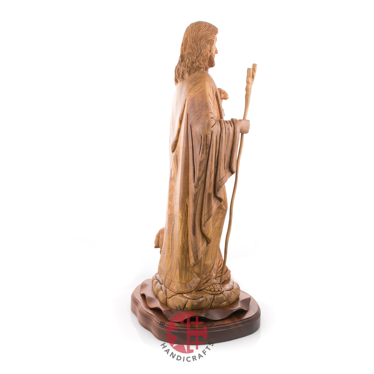 This wood statue has a significant meaning. It means that with Jesus Christ, no one is left unhelped. Everyone that will submit to be ransomed, the savior will rescue from the wilds of sin. This olive wood statue made in Bethlehem, the Holy Land is made for you to remind you of the endless love and power of our saviour Jesus Christ.