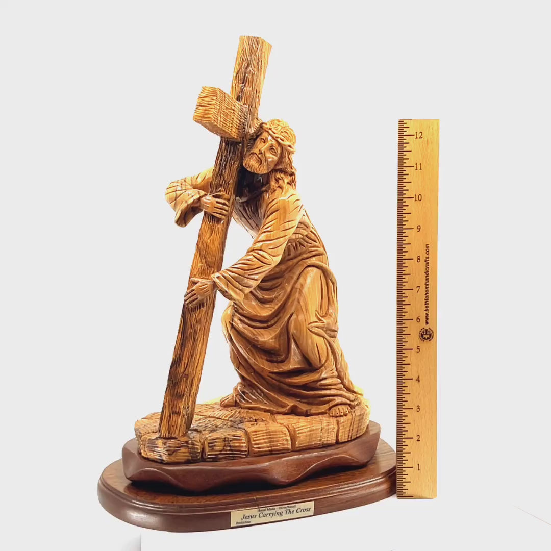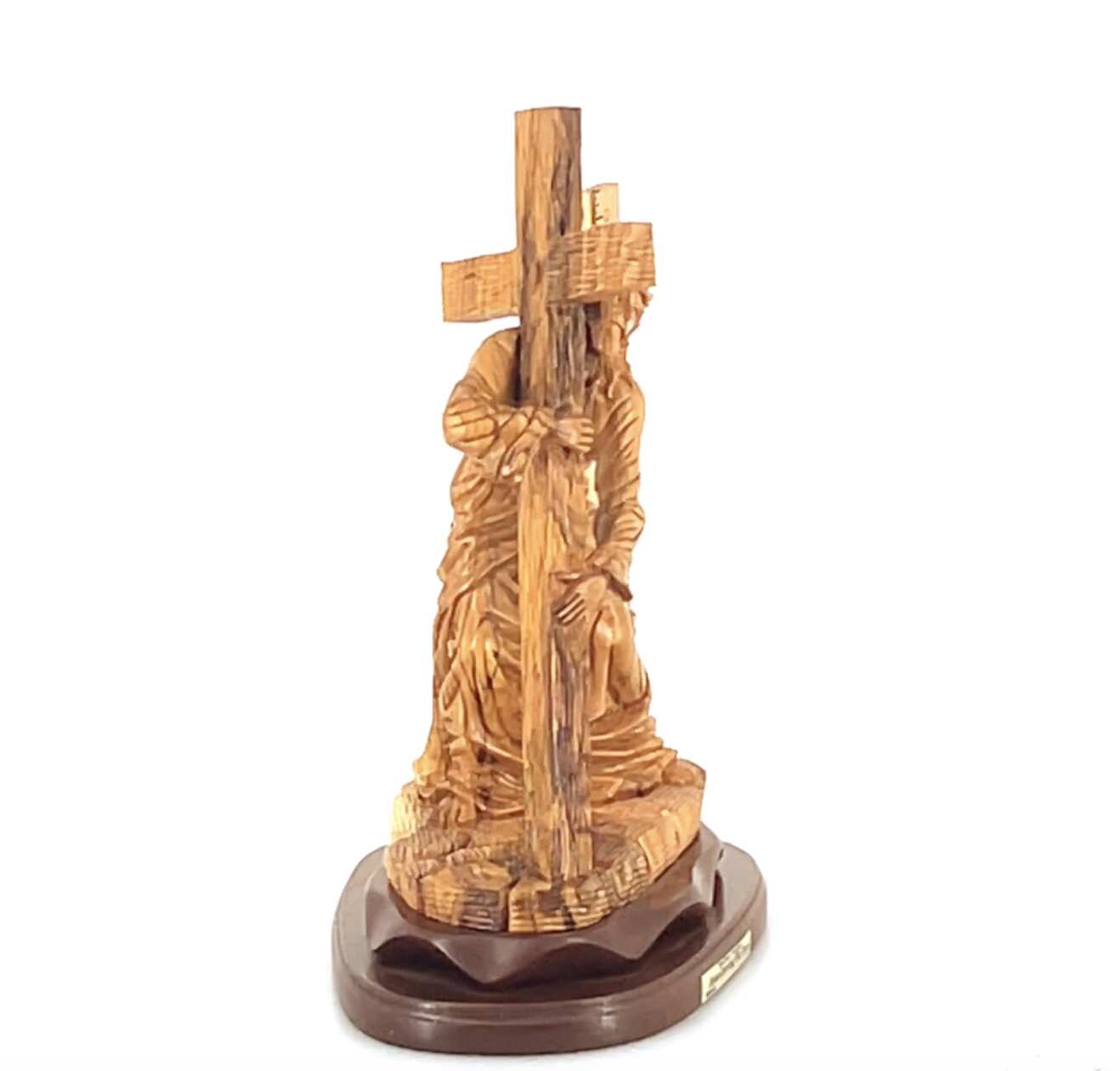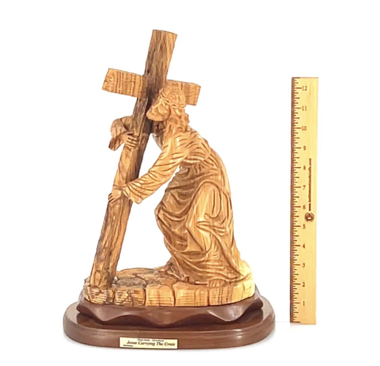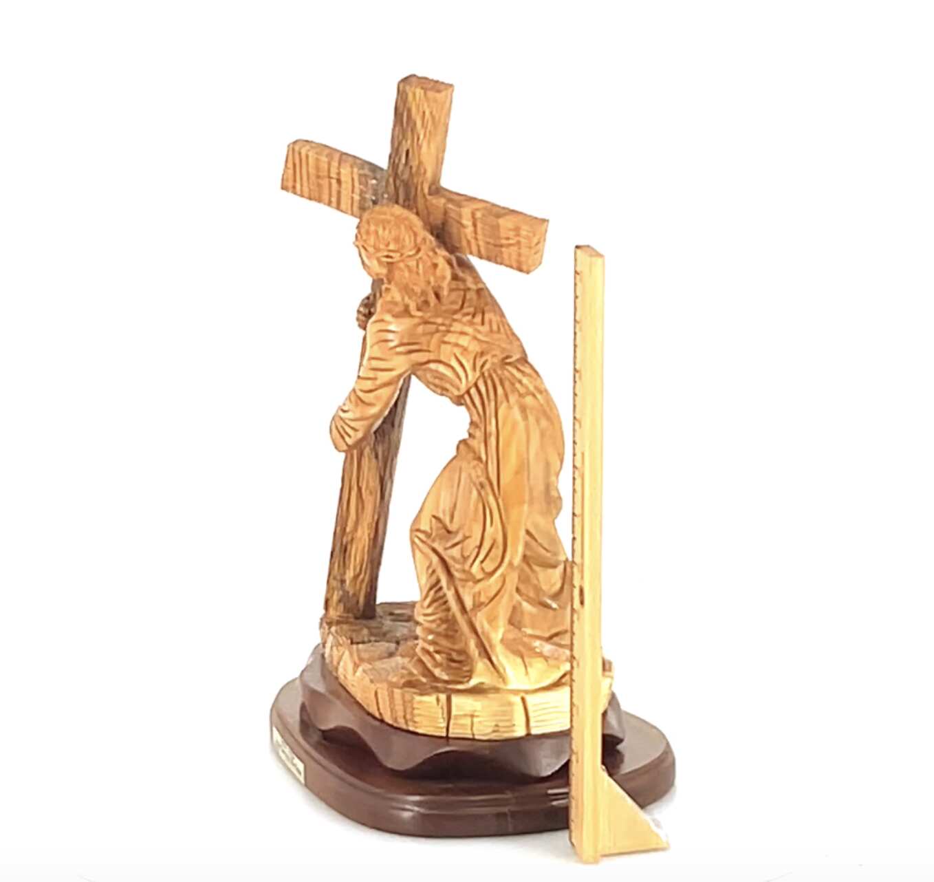 Jesus Christ Carrying the Cross Statue | Olive Wood Carving Art From the Holy Land