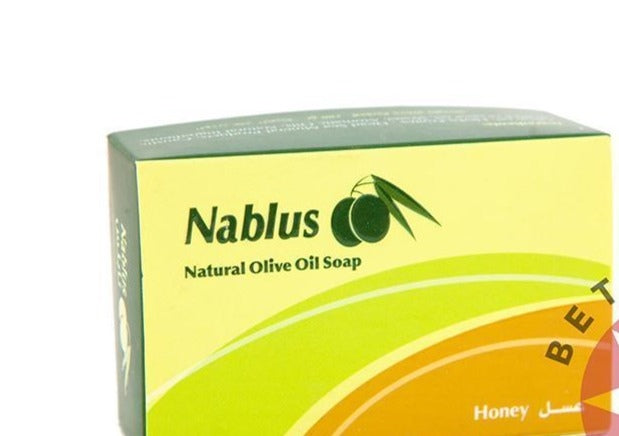 This honey soap made from olive oil in the Holy Land closes pores, giving skin a freshness and enhancing beauty. It also contains anti-microbes. All of our organic extra virgin olive oil soaps are 100% natural and fragrance free. Not only their scent is pleasantly light and fresh, but also they are full of vitamins E and A! The benefits of olive oil soaps are numerous. They moisturize, soften and strengthen the skin, delay wrinkling, and help heal bruises and burn marks. All these soap bars come with the shape of two olives engraved onto them with the word “Nabuls”, the old city where these soaps are made in.