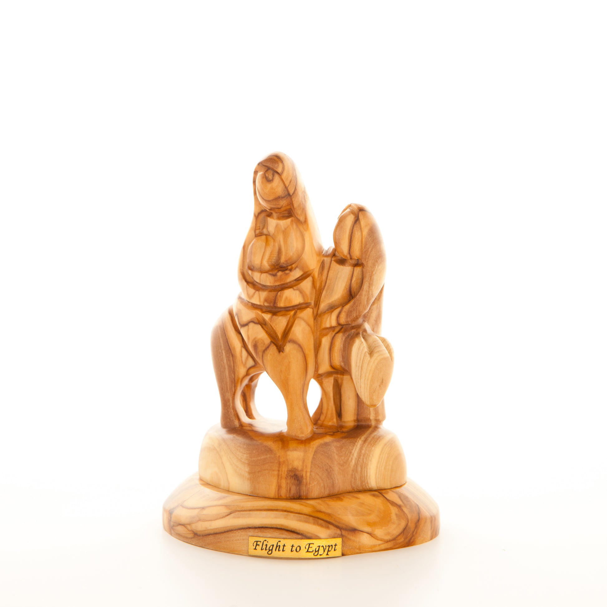 Feel the hearts of Our Blessed Mother and Saint Joseph as they embark on a journey to save their child Jesus from the wrath of earthly kings. Olive wood that grows in Bethlehem is carved in to make this precious image by skillful hands to bring you closer to that love and fear we all share for our children.