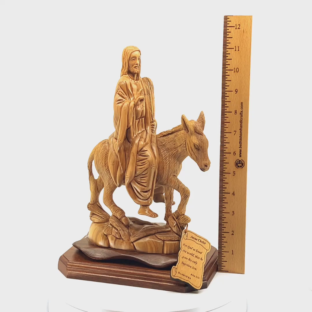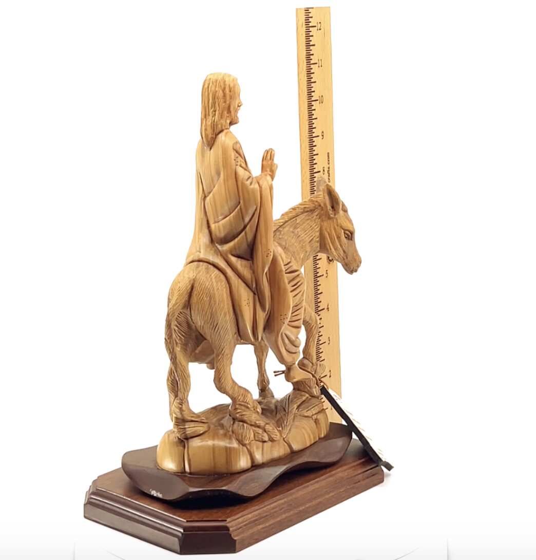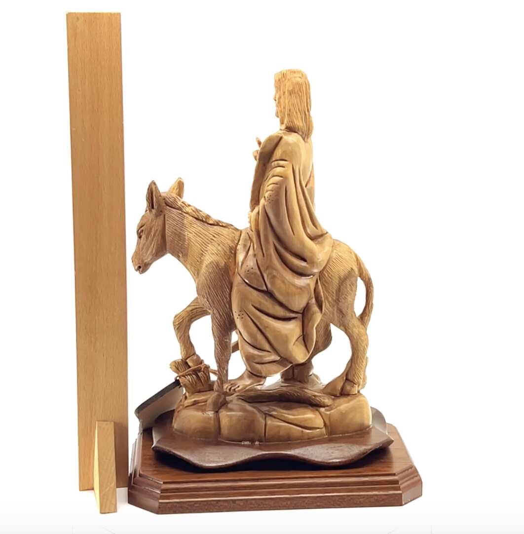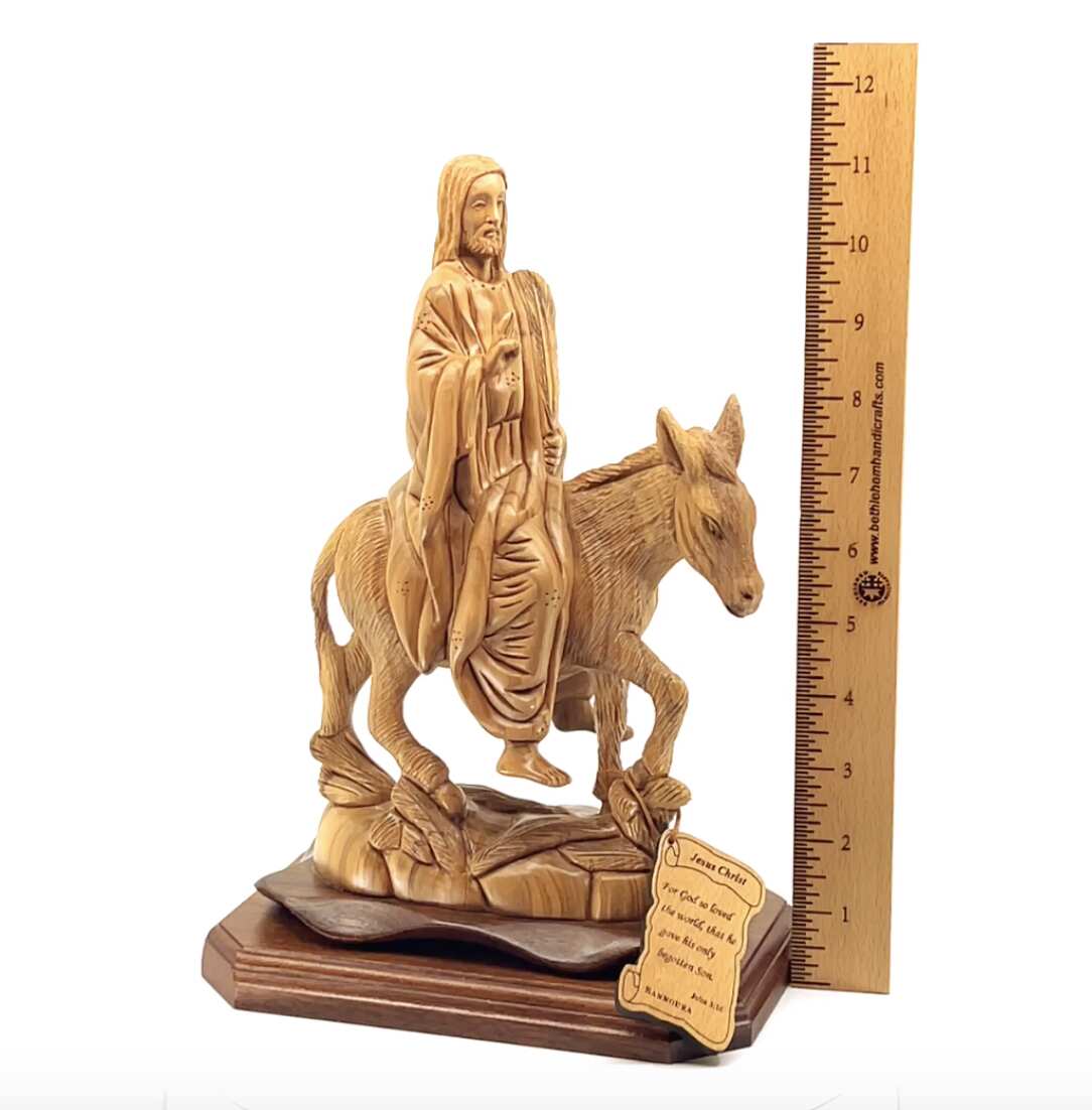 Jesus Christ Riding Donkey, "Entry Into Jerusalem", 11.2" Wood Carving from Holy Land