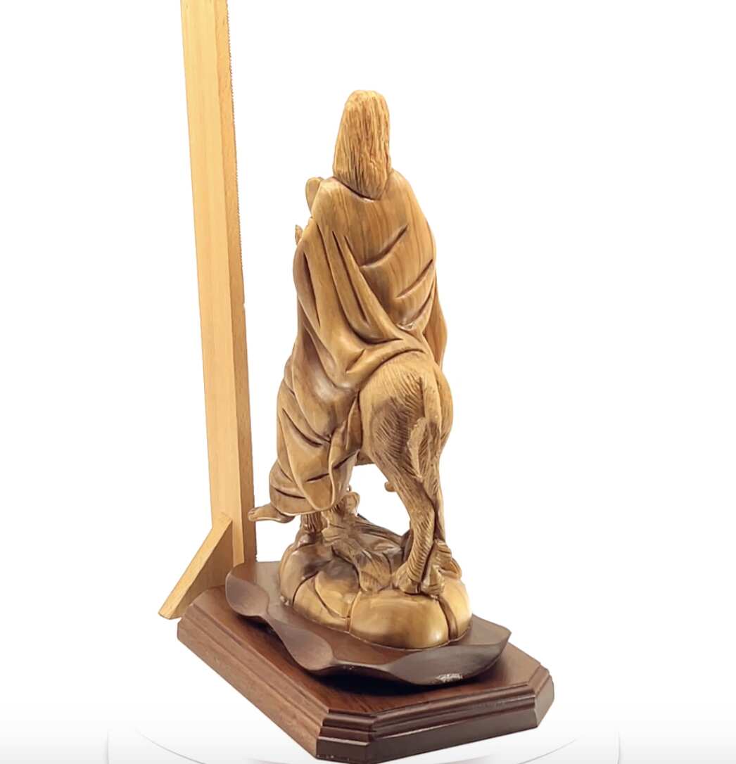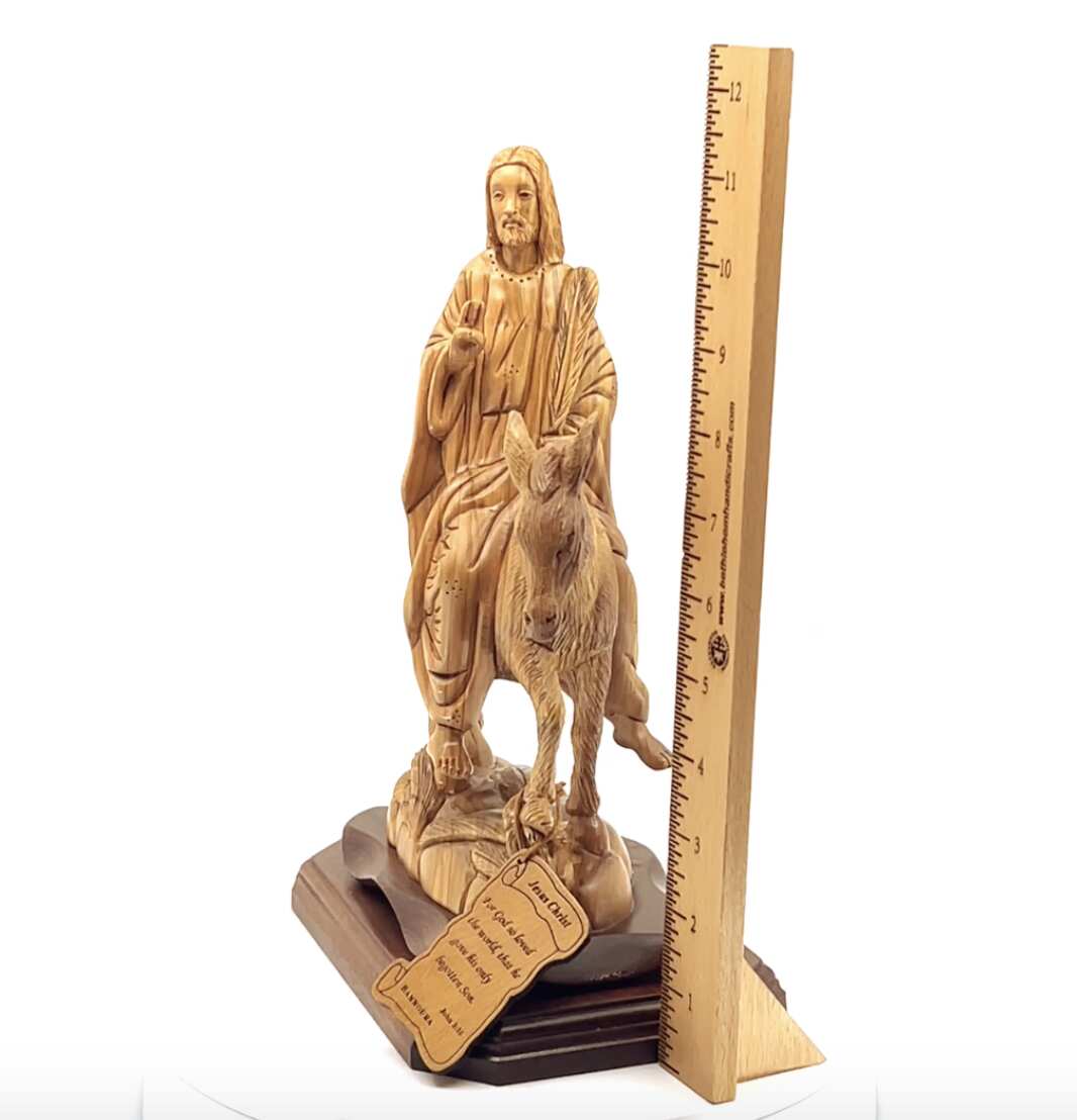 Are you looking for a unique Bethlehem's olive wood statue to decorate your home? This olive wood's statue depicts the entry of Jesus Christ on his donkey into Jerusalem , the city of the Sepulcher, Resurrection and the Passion of Christ.