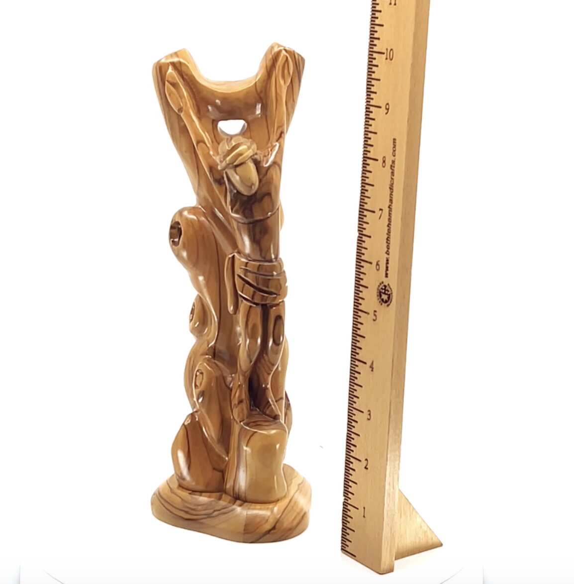 Jesus Christ "Crucified on Cross" Carving, 10" Olive Wood Abstract