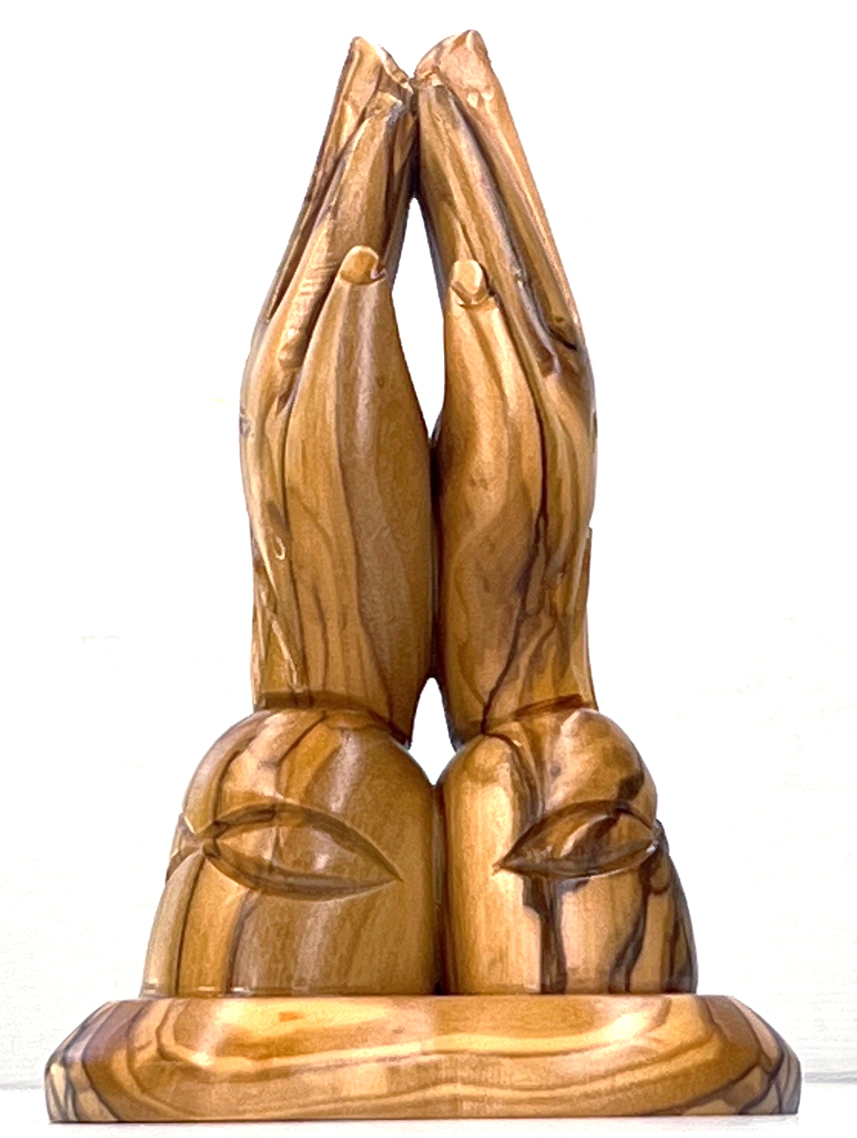 Wooden Praying Hands Statue ( Small) 5.3" Carved in the Holy Land from Olive Wood