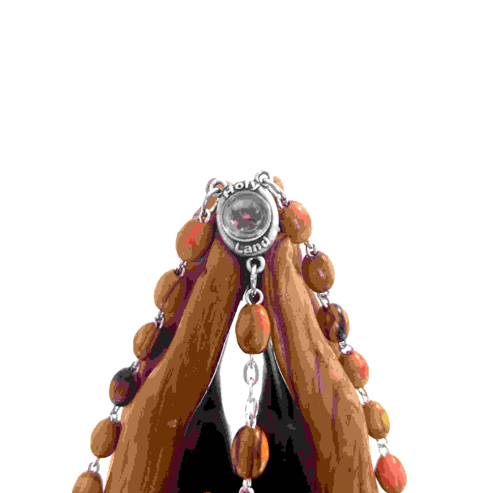 The centerpiece for this gorgeous Bethlehem Rosary is Mary with Jesus and it contains genuine soil from the Holy Land on the back of it.
