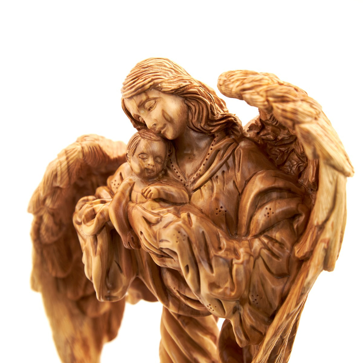 Jesus Holding Baby with Angel Wings Carvings, 11.8"