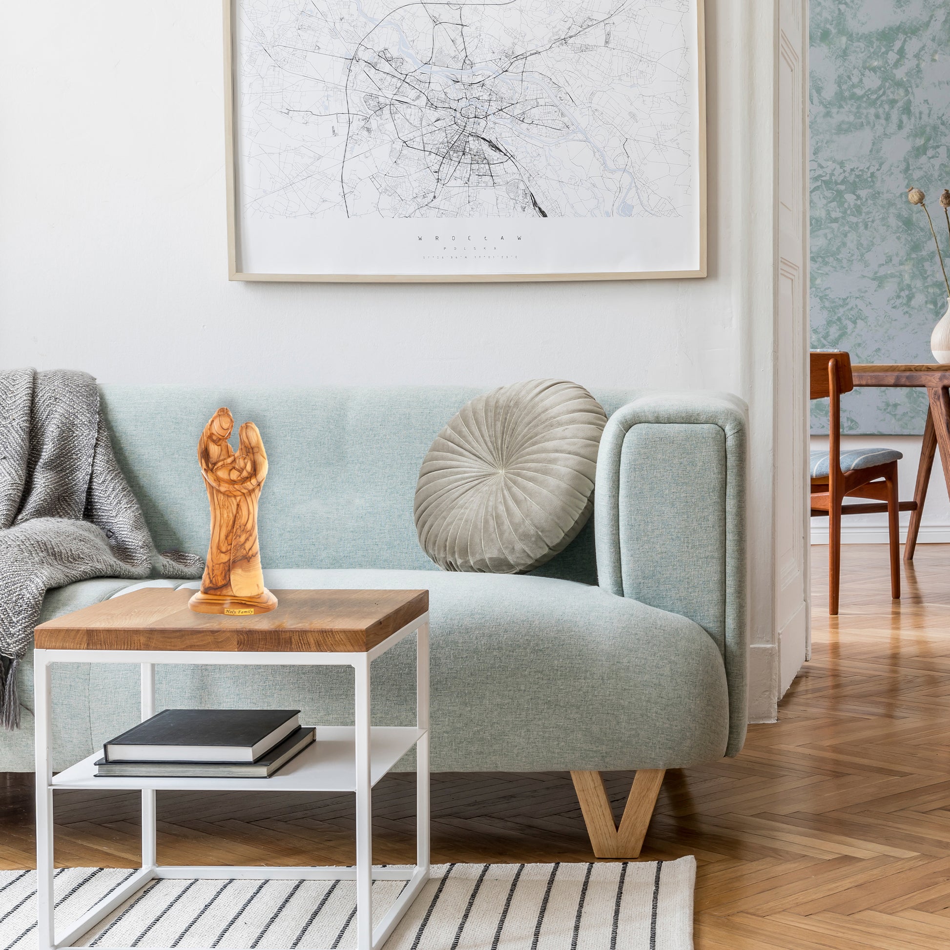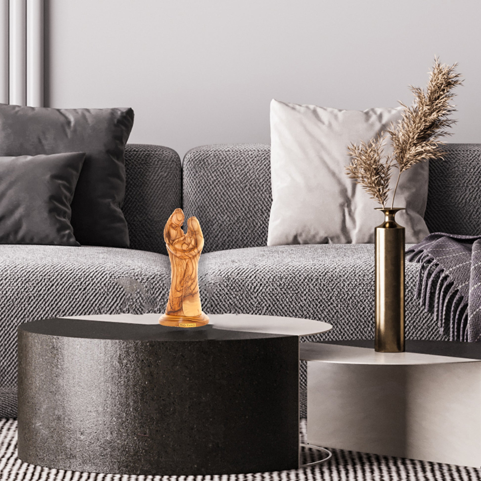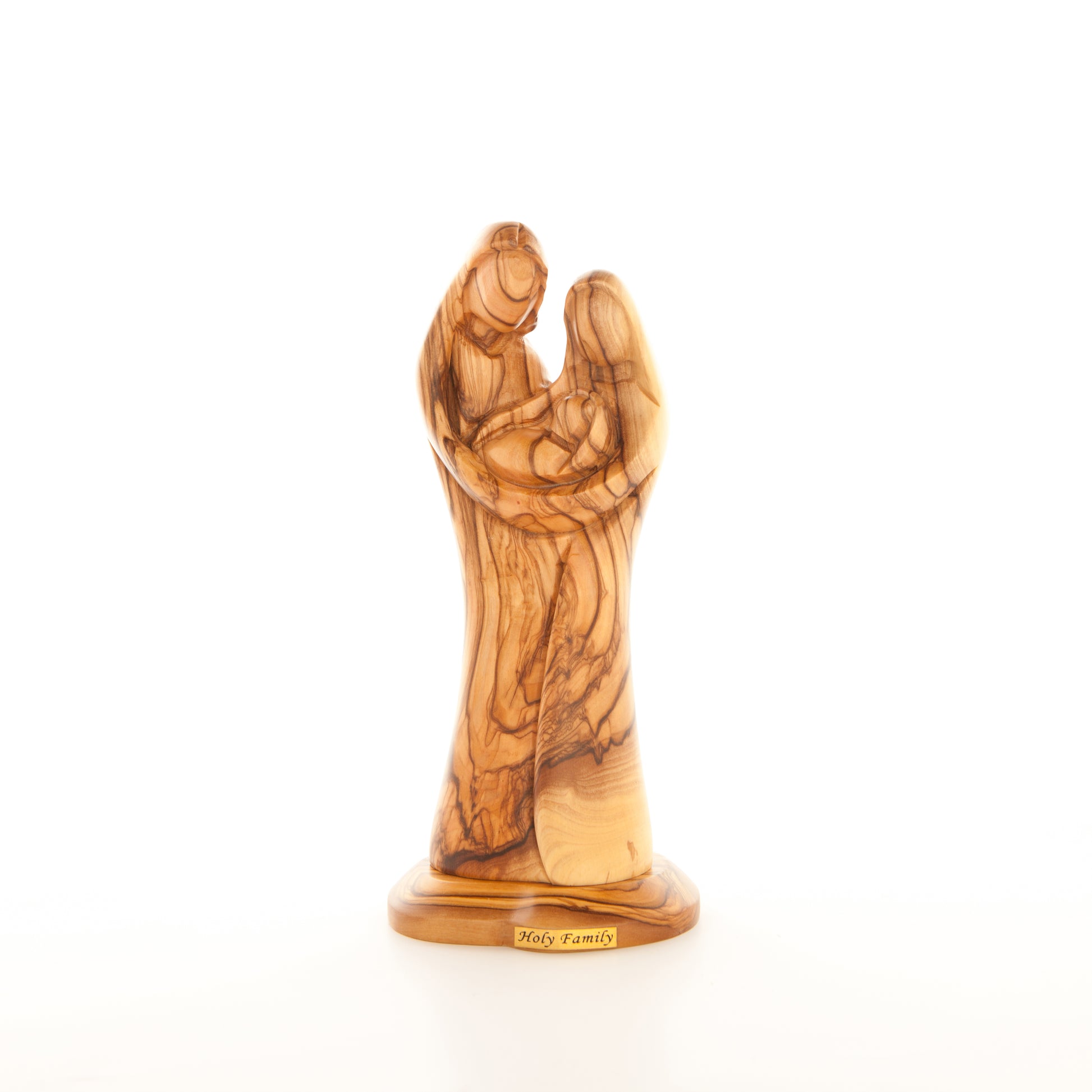 This piece works well in variant lighting. Bethlehem Handicrafts lovingly carves various renditions of the Holy Family from the aged wood of the olive tree. Display the Holy Family statues prominently in your home and be reminded daily to consecrate your family to Jesus and Mary. We as Christian families pledge ourselves to joy and unity in Christ.