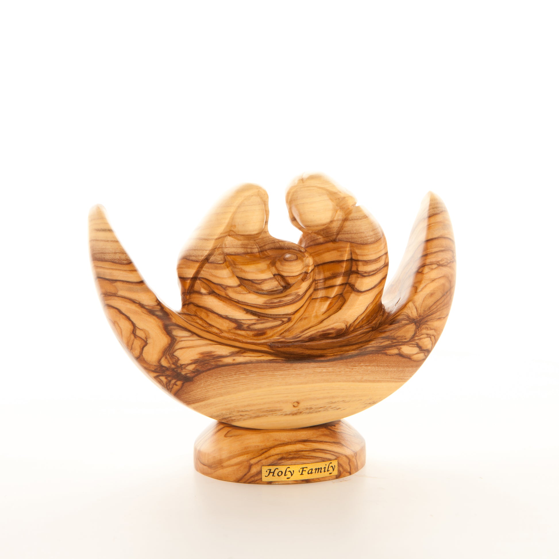 Holy Family "Moon Shaped" Carving Figurine, 4.5" Olive Wood from Holy Land