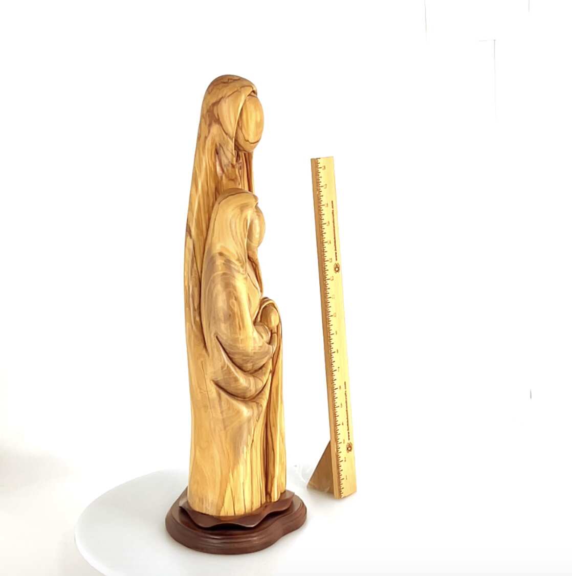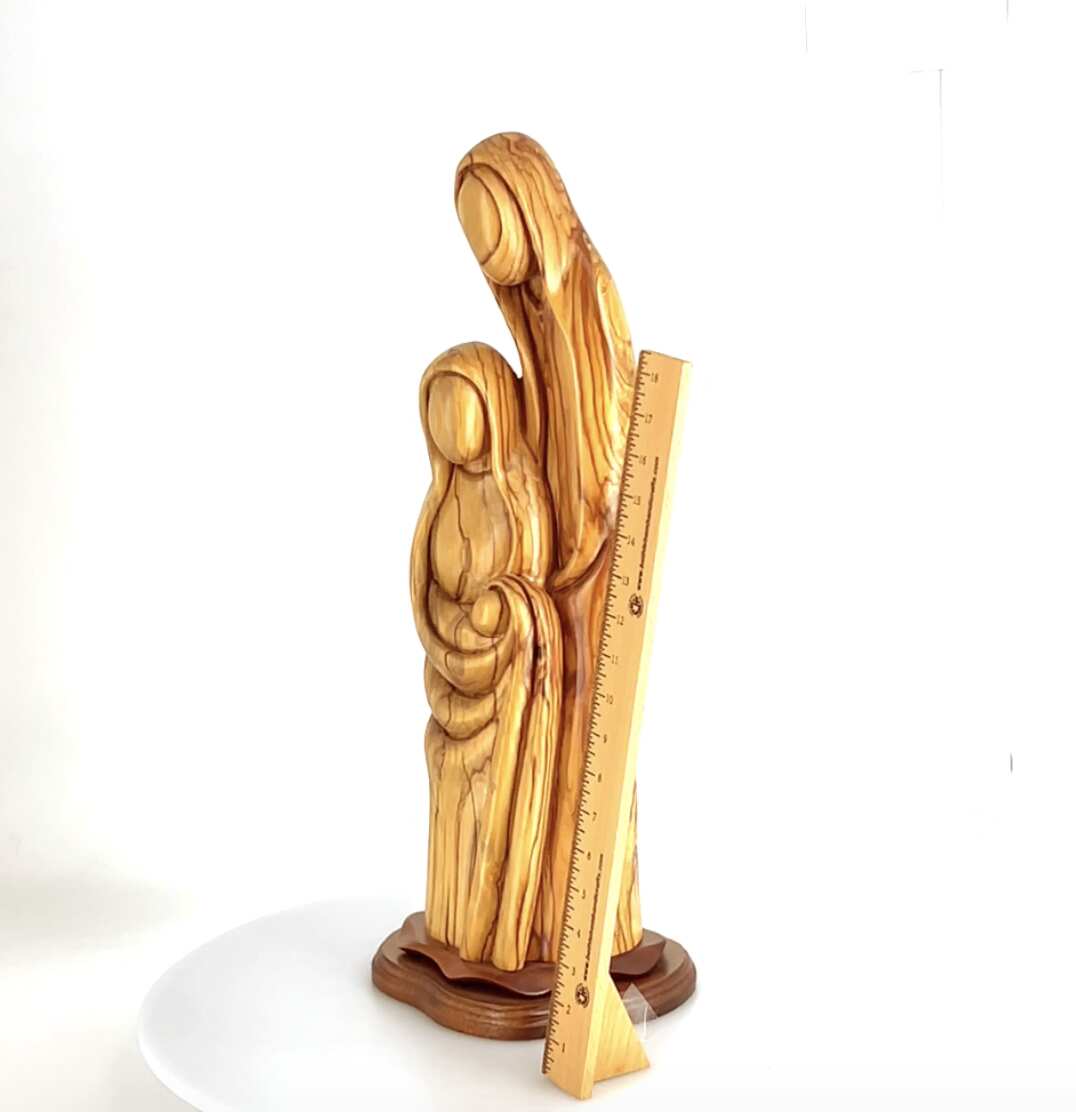 Nativity Scene Sculpture with Holy Family, 23.3" Abstract Statue, Hand Carved Olive Wood
