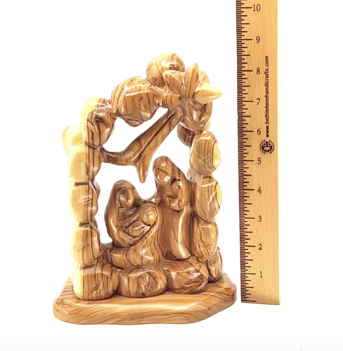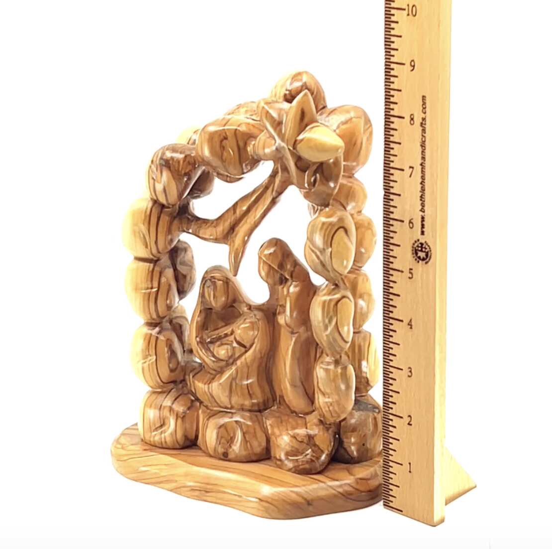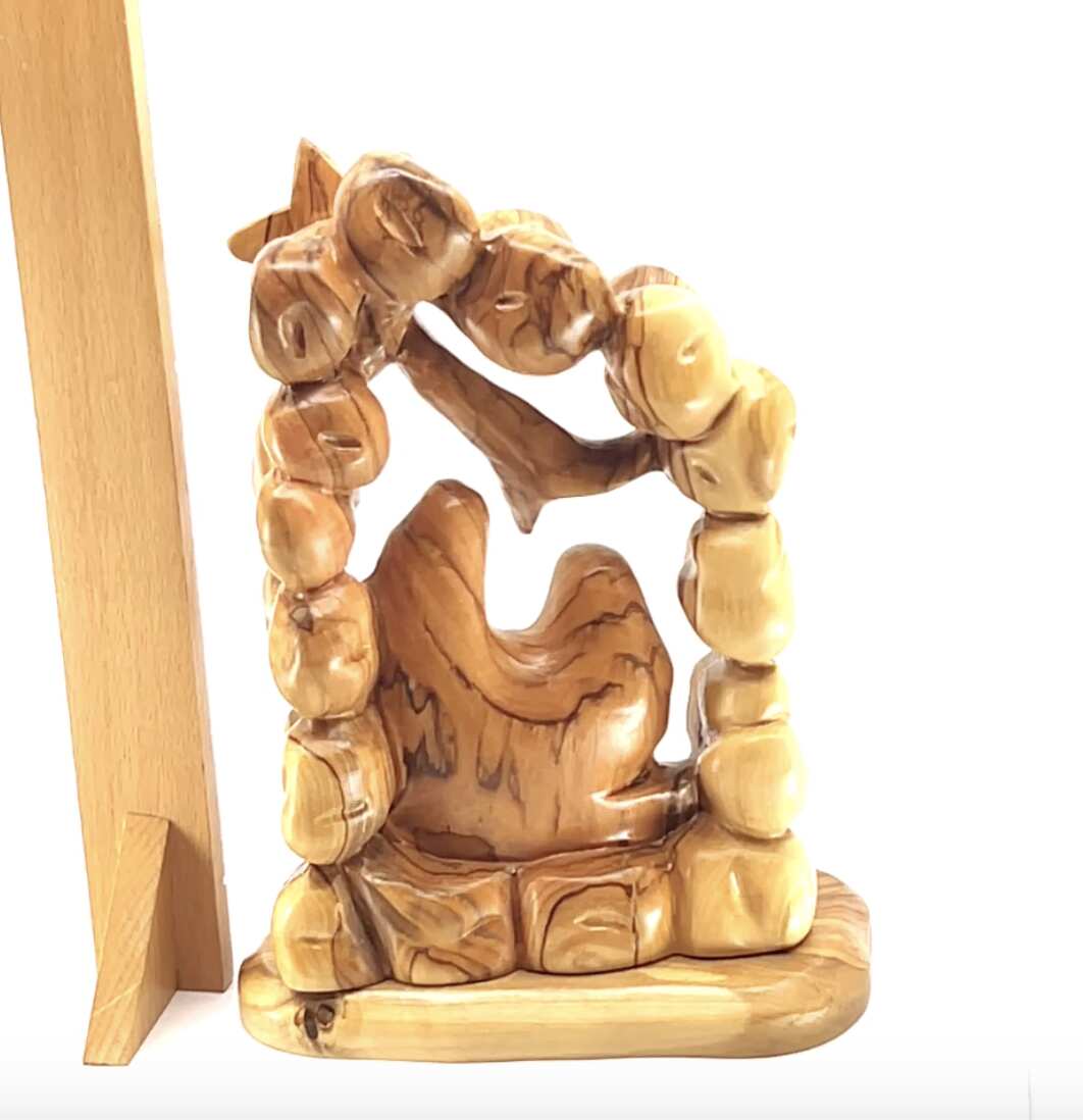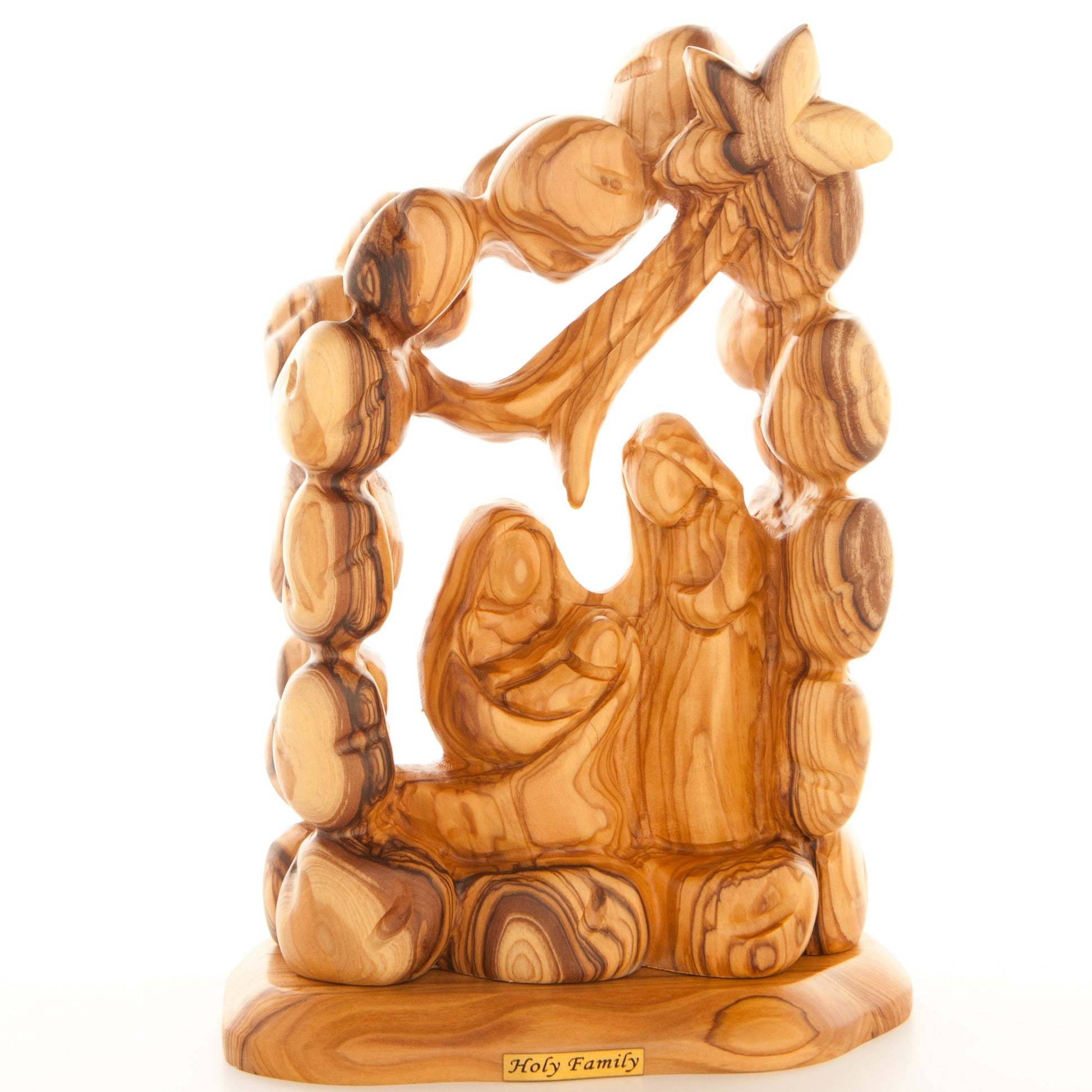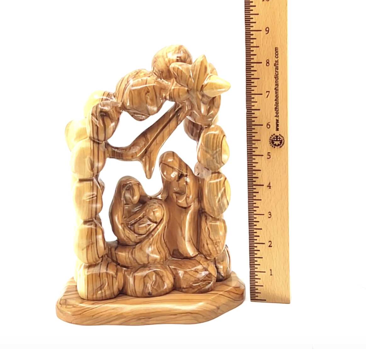 Nativity Scene Sculpture with Bethlehem Star, 8.7" Abstract Hand Carved Olive Wood from Holy Land
