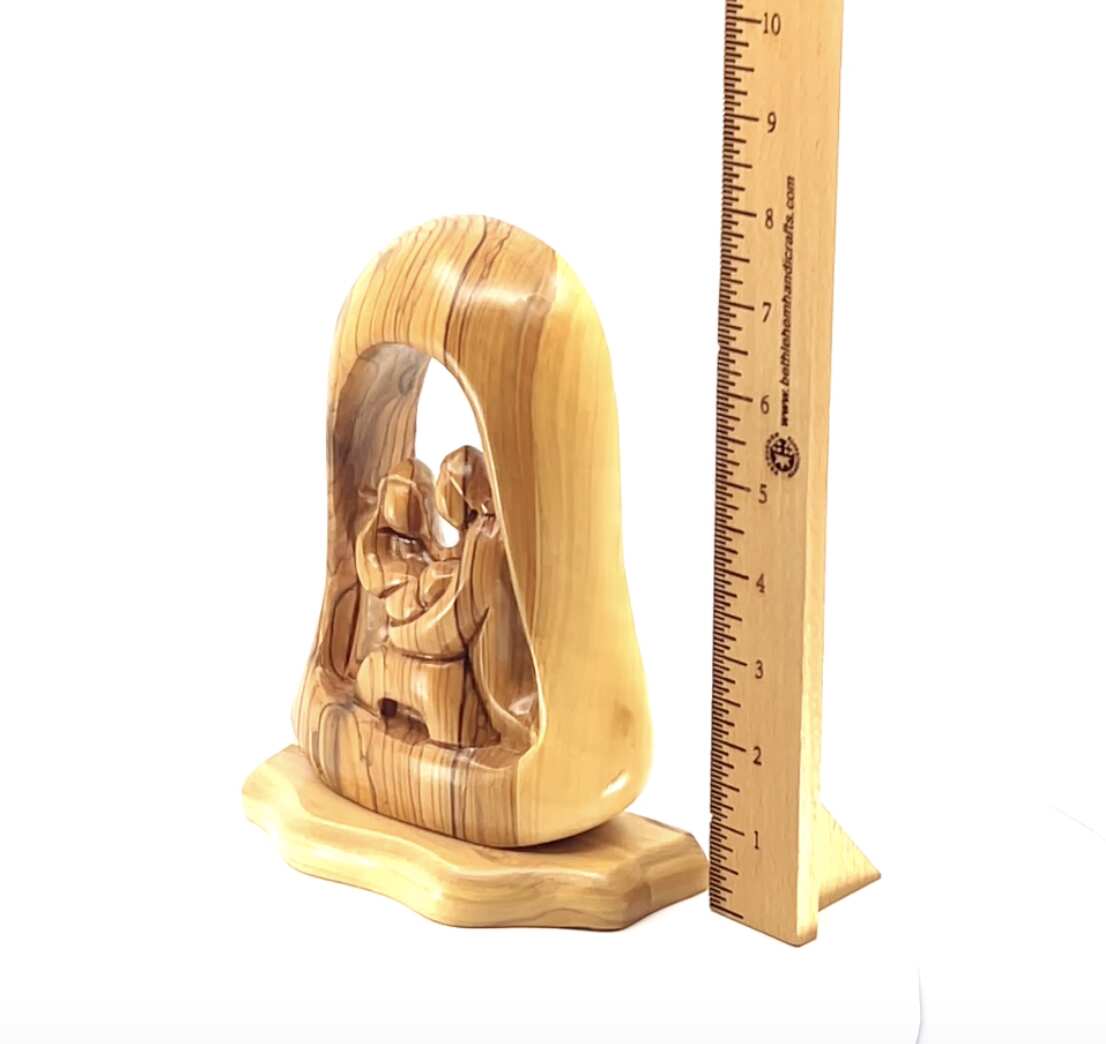 Just like Mary and Joseph are gently holding their child in true Christian tradition, always keep your loved ones close to your heart with this unique piece of the Holy Land.