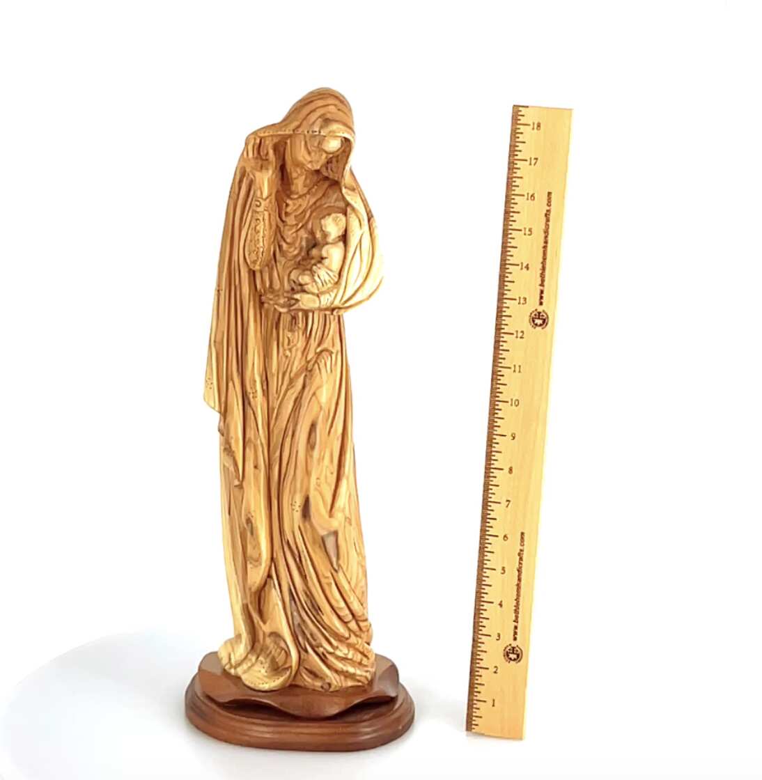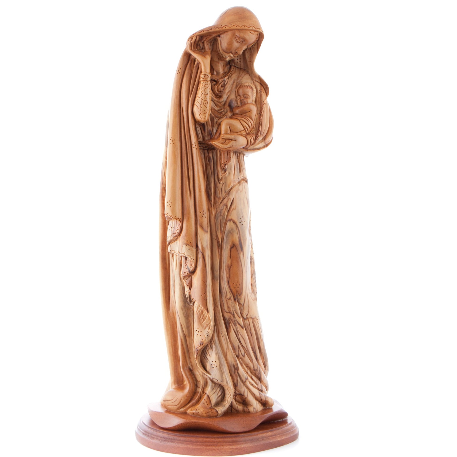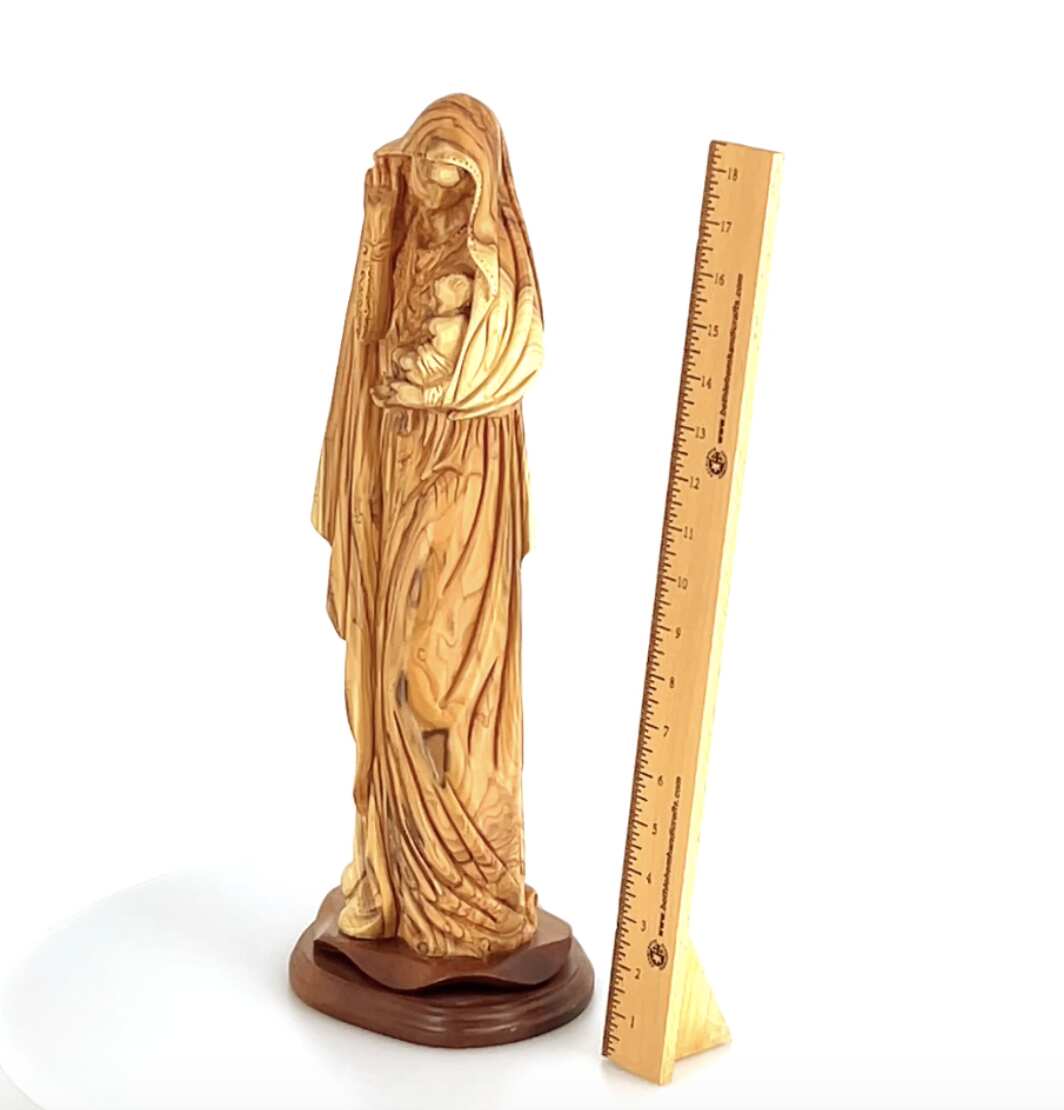 Virgin Mary with Baby Jesus, 19.3" Carved from the Holy Land Olive Wood