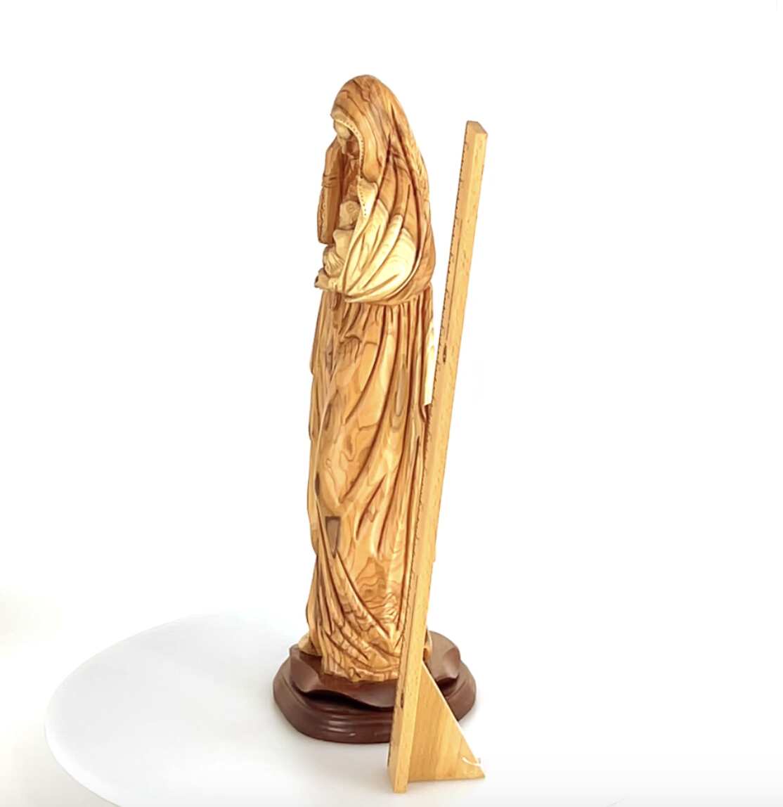 If you are looking for a perfect gift to your loved ones, consider this classic yet elegant piece of Holy Lands finest olive wood carving. Blessed Mary in her humble pose holding her son Jesus is a essential part of every prayer that includes this archetype of motherly love and care for everyone.