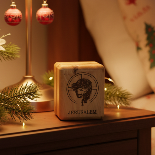 Made out of Jerusalem olive wood, this box is carefully hand carved by Christian hands in Bethlehem especially to keep your rosary or jewelry safe. In addition to the soft red felt lining with a magnetic snap closure, this casket has the image of Jesus Christ engraved with laser onto the cover and the word “Jerusalem” carved below it to always remind us of the Holy Land.