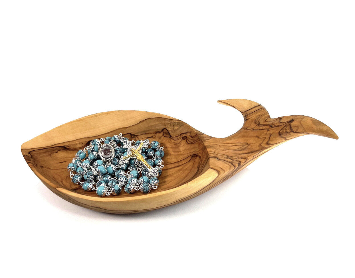 Made of magnificent turquoise stone, this rosary is skillfully hand carved by Christian craftsmen to create a beautiful and a classic piece for Christians around the world. Works as a perfect first communion gift or for personal use, this exquisite rosary will be a constant reminder of the serenity of the Holy Spirit, and the importance of praying to Virgin Mary of is always watching over us.