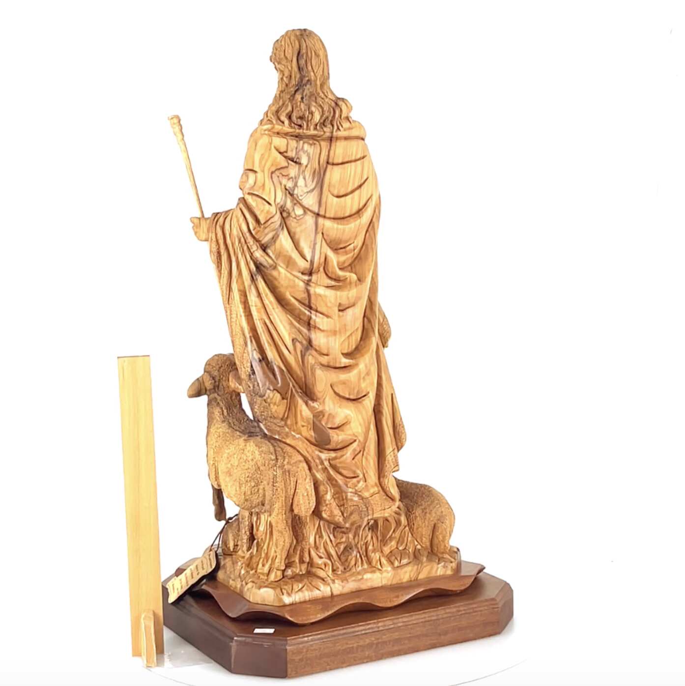 The Good Shepherd, Jesus Christ, 26" Masterpiece Statue Carved, Holy Land Olive Wood