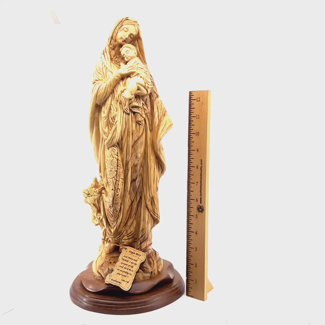 Virgin Mary holding Jesus Christ Sculpture, 17.3" Olive Wood from Holy Land