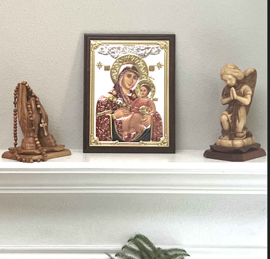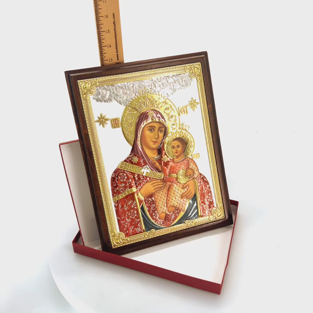 Bethlehem Virgin Mary Holding Child Jesus | Silver Plated Icon, Wall Hanging with Wooden Frame